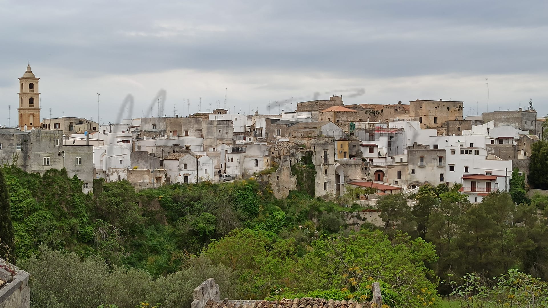 Ville historique des Pouilles avec un grand ravin, des rues étroites et des spécialités culinaires locales.