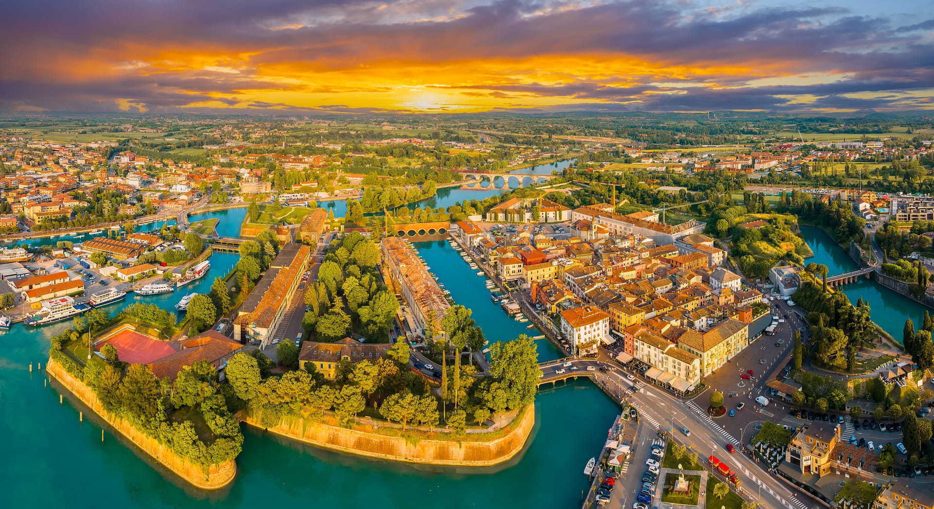 Nichée sur la rive sud du lac de Garde, Peschiera del Garda est une commune dynamique de la province de Vérone. Connue localement sous le nom de Pischéra ou Pescheria, cette ville occupe une position stratégique à l'embouchure du lac dans le fleuve Mincio. Sa position unique en a fait historiquement un bastion militaire fortifié, comme en témoignent ses imposants bastions et ses murs bien conservés, aujourd'hui inscrits au patrimoine mondial de l'UNESCO. Aujourd'hui, Peschiera del Garda est reconnue pour ses paysages pittoresques, alliant les eaux bleues sereines du lac à un environnement verdoyant. La ville est à la fois un havre touristique et une halte populaire pour les habitants, offrant un éventail d'activités récréatives, de la navigation de plaisance à la pêche en passant par la gastronomie au bord du lac. La localité est un nœud ferroviaire et routier essentiel, ce qui la rend facilement accessible aux voyageurs qui explorent la région de la Vénétie. Les activités économiques sont florissantes pendant les saisons touristiques de pointe, grâce aux entreprises d'hôtellerie et de vente au détail qui s'adressent aux visiteurs du monde entier.
